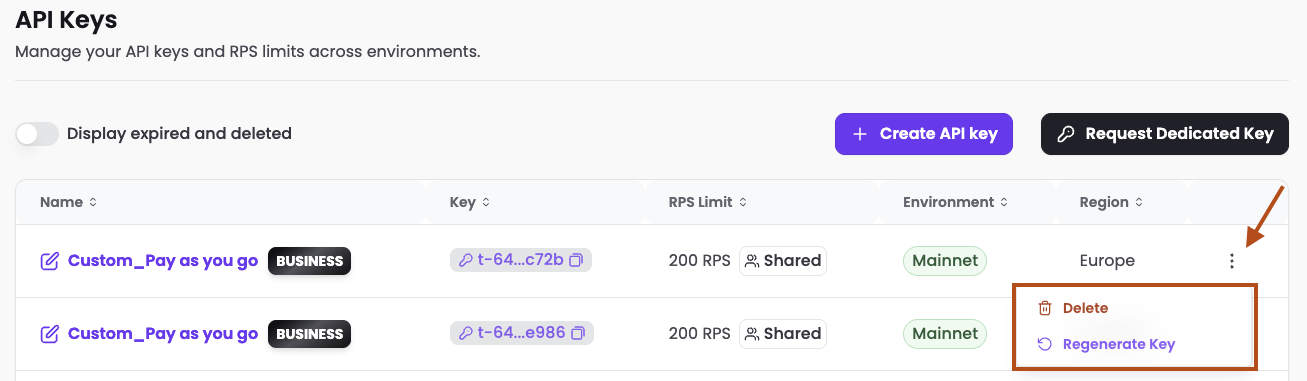 If you suspect or are sure that your API Keys have been compromised or exposed, you can regenerate or expire them.