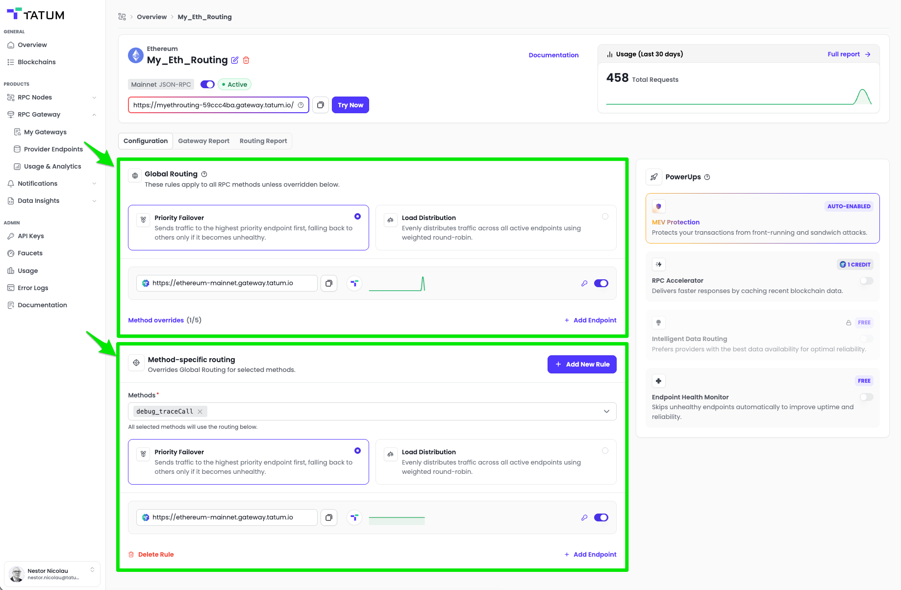 - Automatic failover: If the primary endpoint becomes unresponsive the Gateway immediately switches traffic to the next healthy endpoint in the list.